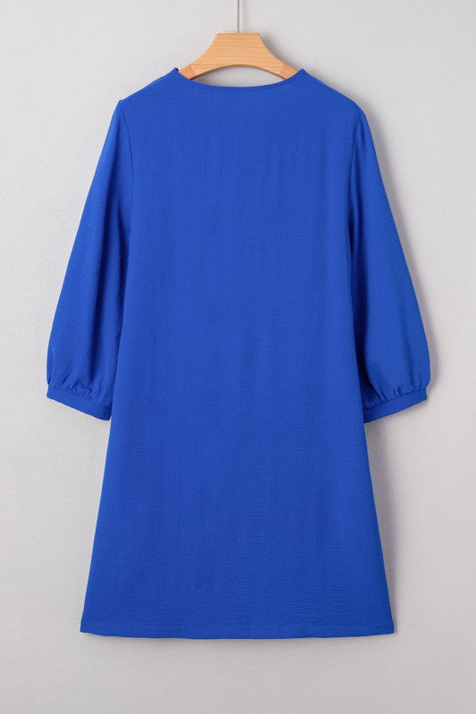This playful dress is designed to flatter every figure with its simple, chic shift silhouette. The frilled neck design adds a touch of feminine charm, while the stylish bracelet sleeves bring a modern edge. Perfect for a variety of occasions, its mini length keeps the look fresh and fun.