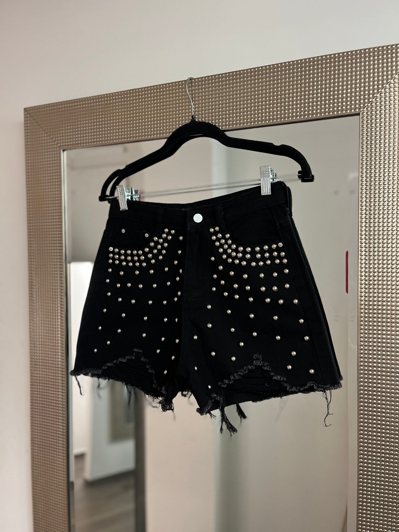 Front and back pockets. Ripped.