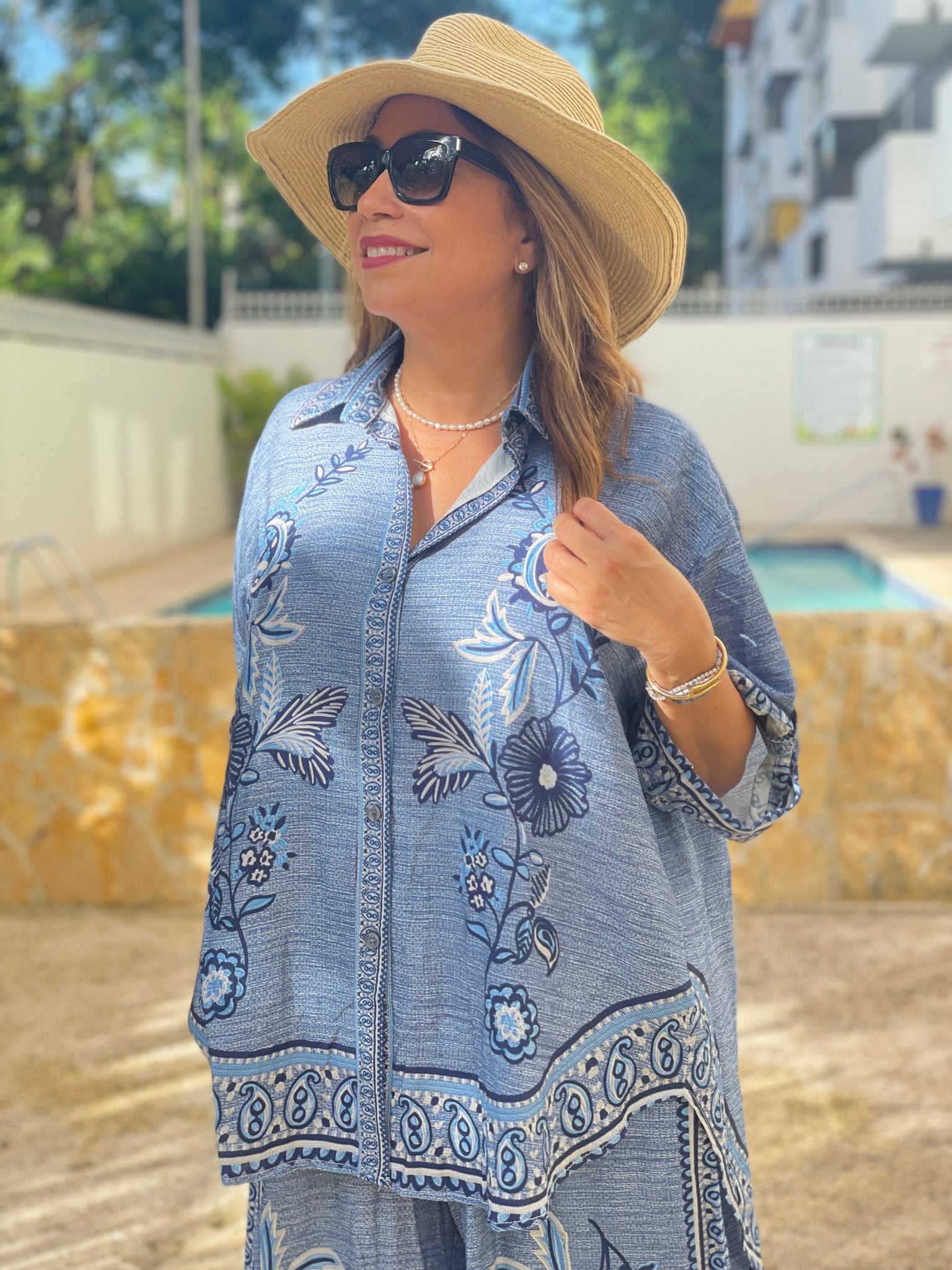 Italian Floral Blue BLOUSE *only*