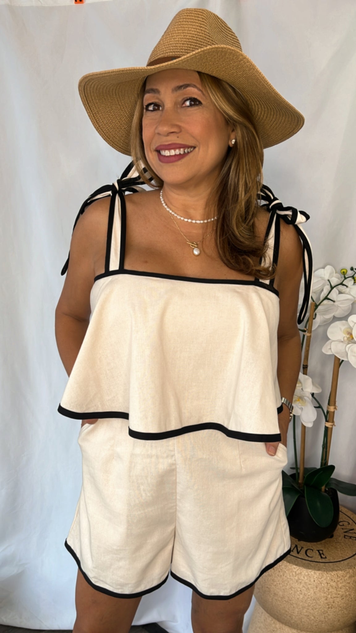 Tie straps. Two side pockets. Zips up at the back. Runs a little bit small if you are between two sizes choose one up.