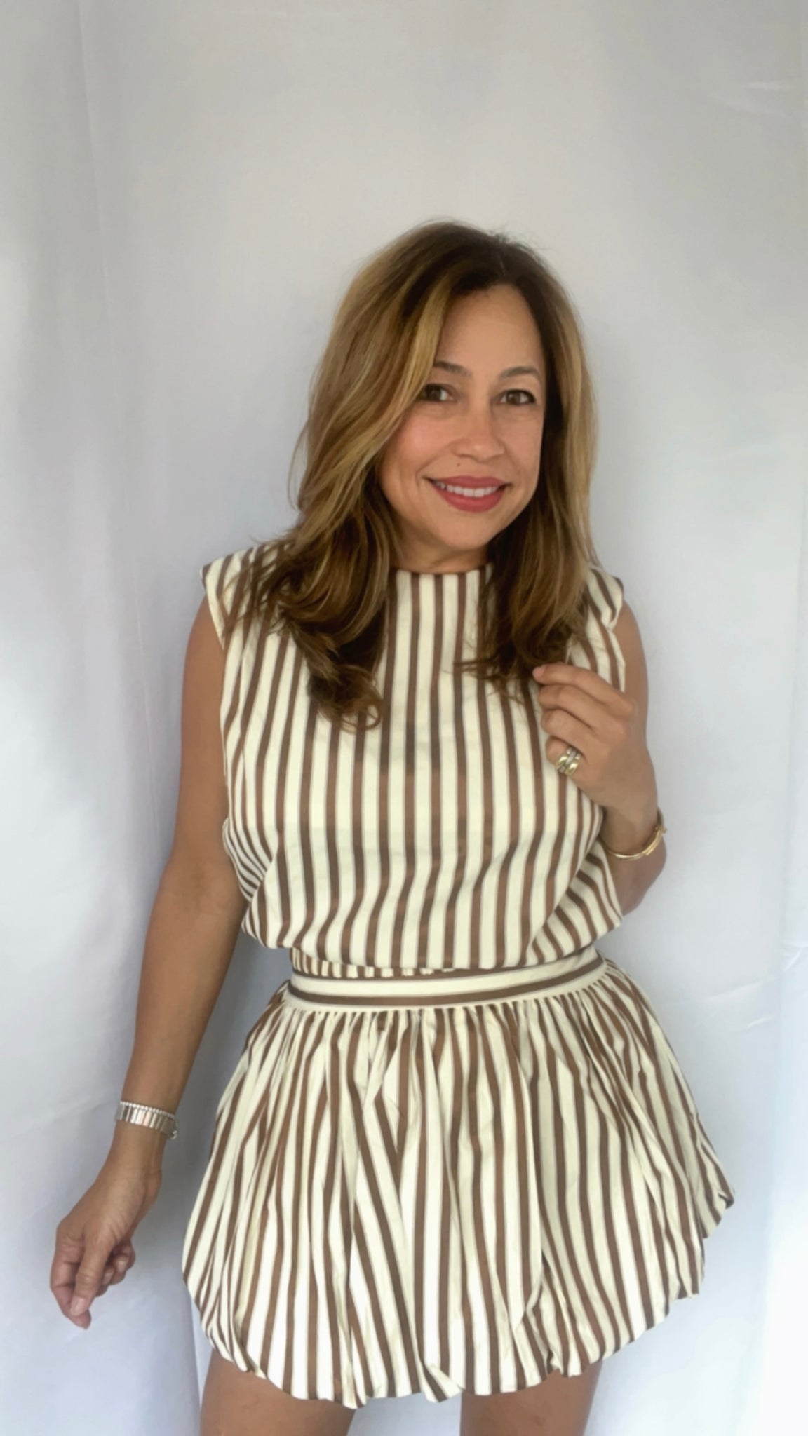El top tiene almohadas pequeñas en los hombros. Elástico en la parte de abajo. Cierre con botón en la parte de atrás. Se vende por separado pero puedes hacerla un set con la falda pantalón del mismo estampado que tenemos en el álbum de Shorts.